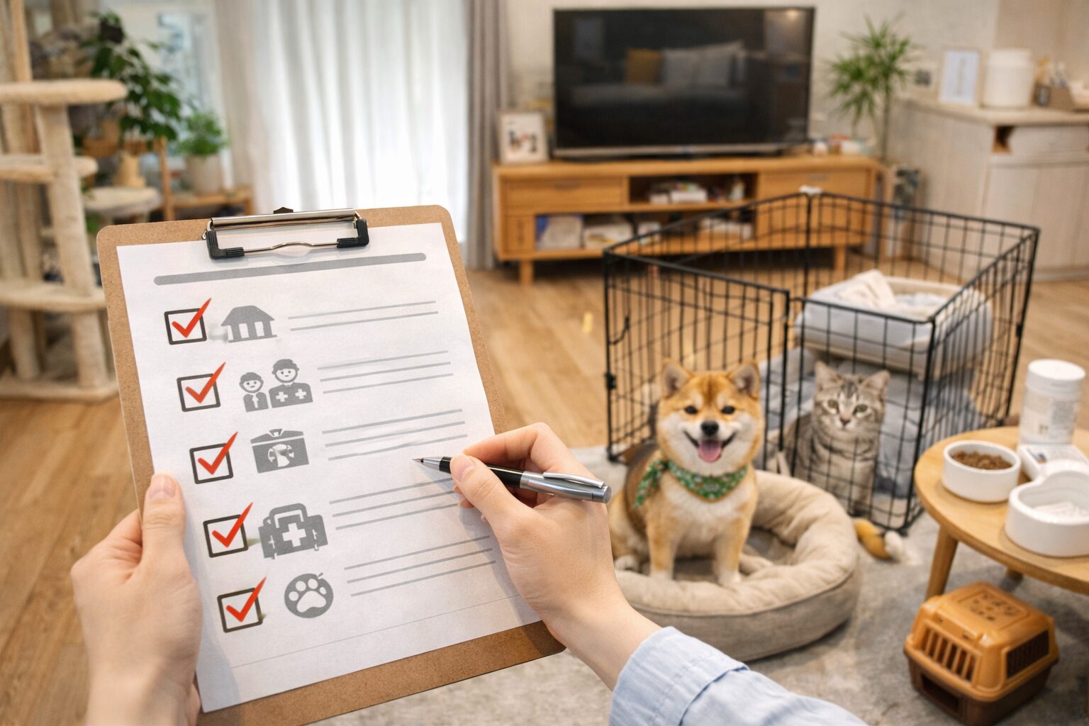 賃貸ならペット可の規約、頭数制限、体重制限。分譲でも管理規約がある場合があります。口頭で「たぶん大丈夫」だと揉めがちなので、規約をスクショで持っておくと安心です。特に多いのが、ペット可だけど「犬は体重◯kgまで」「猫は◯匹まで」みたいな細かい条件。ここを見落とすと、迎えた後にトラブルになって詰みます。