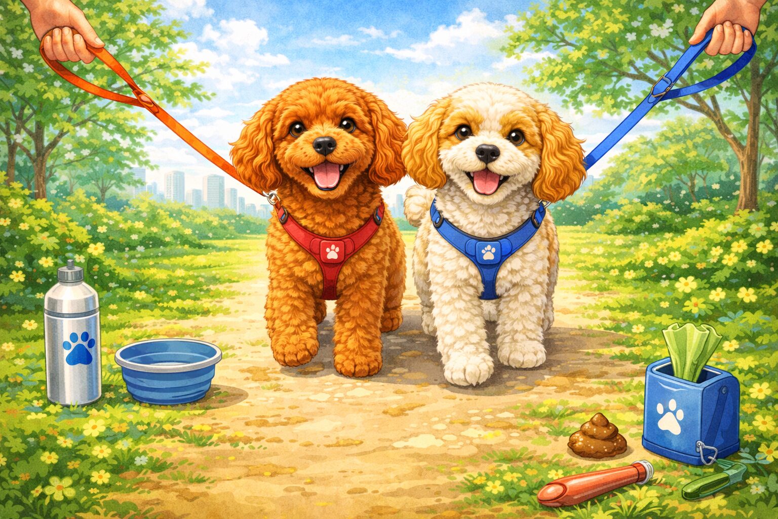 キャバプーは運動量が中程度の子が多く、毎日30分〜1時間くらいの散歩+室内遊びで満足しやすいです。もちろん、活発な子はもう少し動きたがるし、のんびりな子は短めでも満足するので、あなたの子の反応を見て調整していきましょう。ここで大事なのは、散歩は「疲れさせる」ためじゃなくて、心と体を整えるためにやる、という考え方です。
