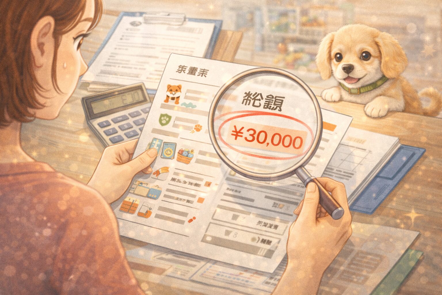 総額といっても、家庭によって含める範囲は変わります。ただ、店舗の見積もりで最低限押さえたいのは、契約に紐づく費用(生体価格・パック・保証・定期・任意オプション)です。ここを分解してもらえば、少なくとも「契約で固定化される支払い」が見えます。