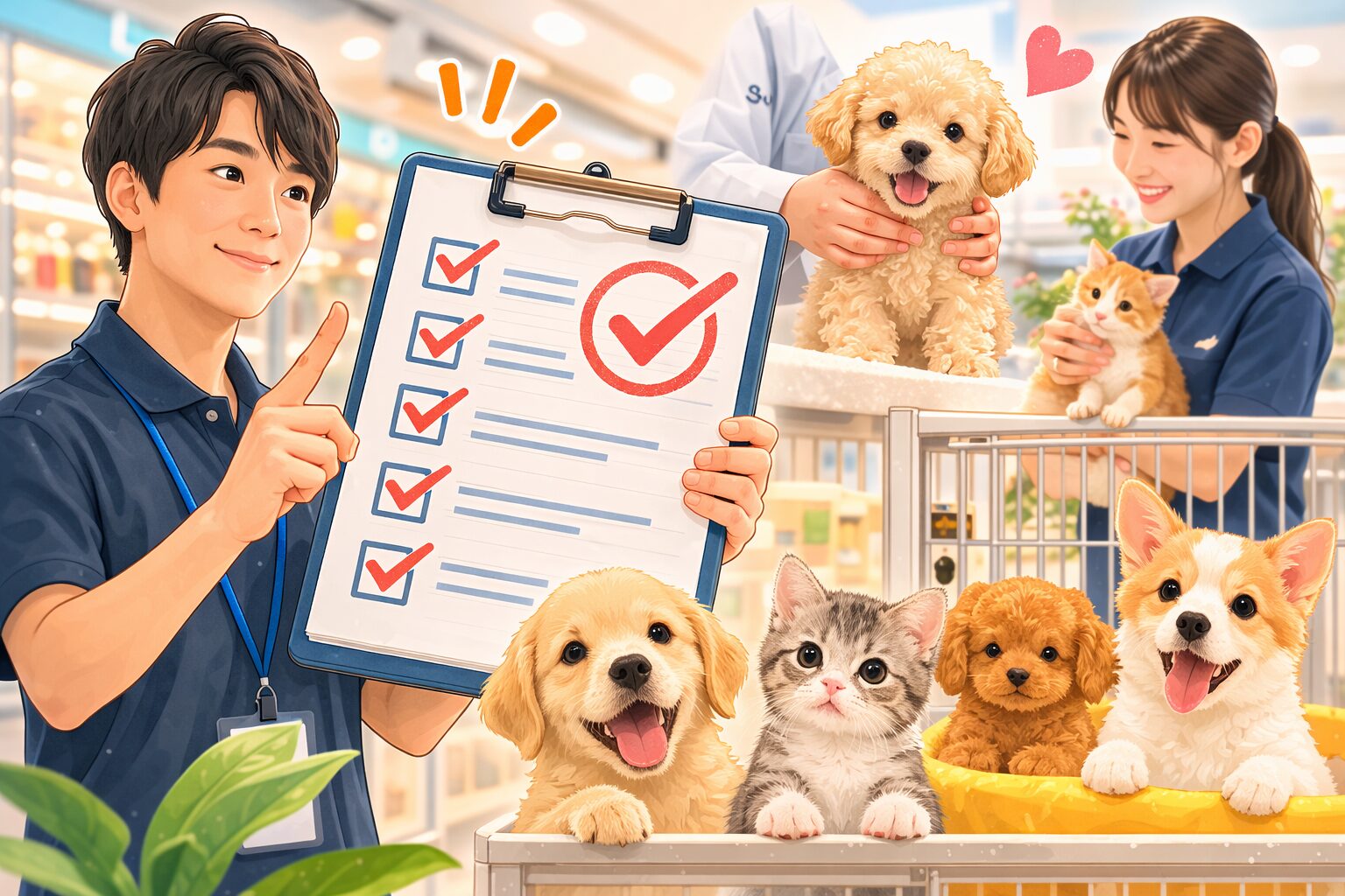 健康や契約に関する内容は、店舗や時期、契約内容で変わることがあります。最終的な判断は専門家にご相談ください。お迎え前後の健康面は、かかりつけ候補の獣医師にも相談しながら進めると安心です。