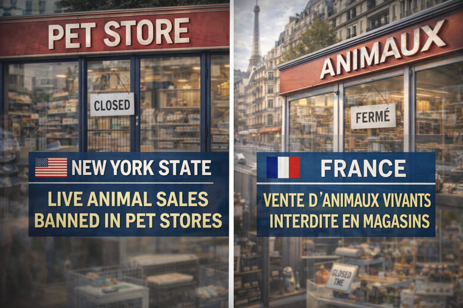 海外では、生体販売そのものを見直す流れが進んでいます。たとえばアメリカのニューヨーク州では、ペットショップでの犬猫(うさぎ含む)販売を禁じる法律が成立し、施行の話題も出ました。またフランスでも、ペットショップでの犬猫販売を禁止する方向で制度が動いたことで注目されました。こういう話を聞くと、「じゃあ日本もすぐ禁止にすればいいのに」と思うかもしれないし、逆に「禁止したら闇取引が増えるんじゃ?」と心配にもなりますよね。