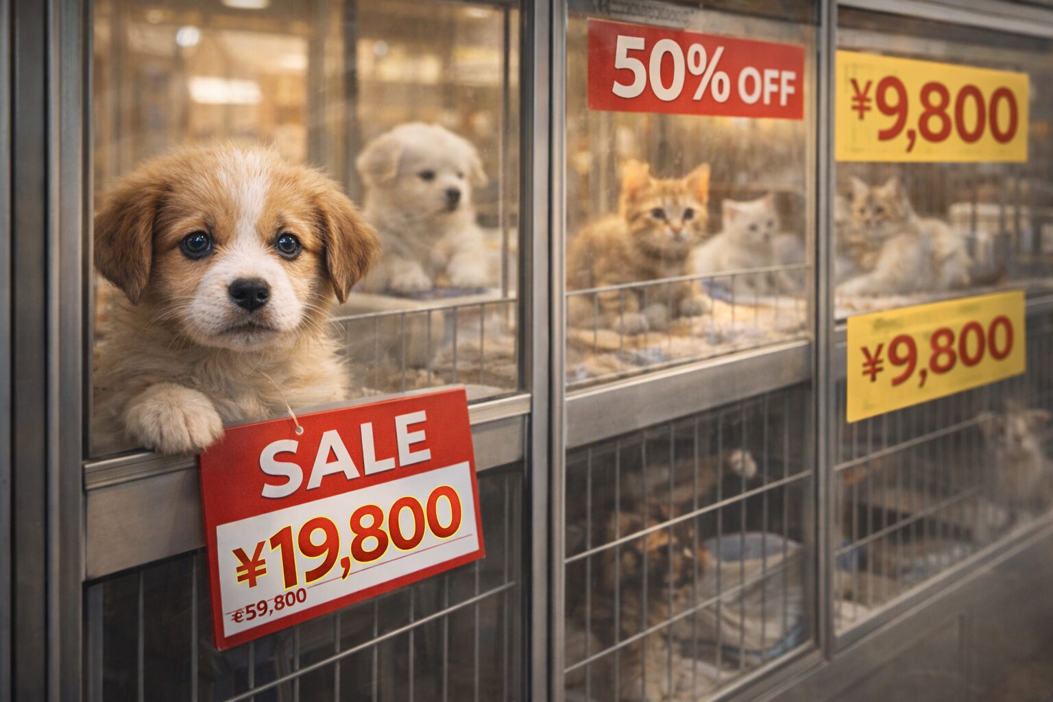 まず「値下げ」は、良い悪いというより流通の仕組みとして起こります。子犬・子猫は月齢が上がるほど“初めての飼い主さんが手を出しにくい”傾向があるので、店側は価格を調整してでも早く家庭に繋げたい。ここまでは分かりやすいです。次に「仕入れ先へ戻る」は、契約形態次第ですが、売れ残った個体を生産者側が引き取って飼育を続けるケース。そこで繁殖に回ることもあるし、家庭犬・家庭猫として育つこともあります。ここがブラックボックスになりやすいので、不安が強くなるポイントなんですよね。