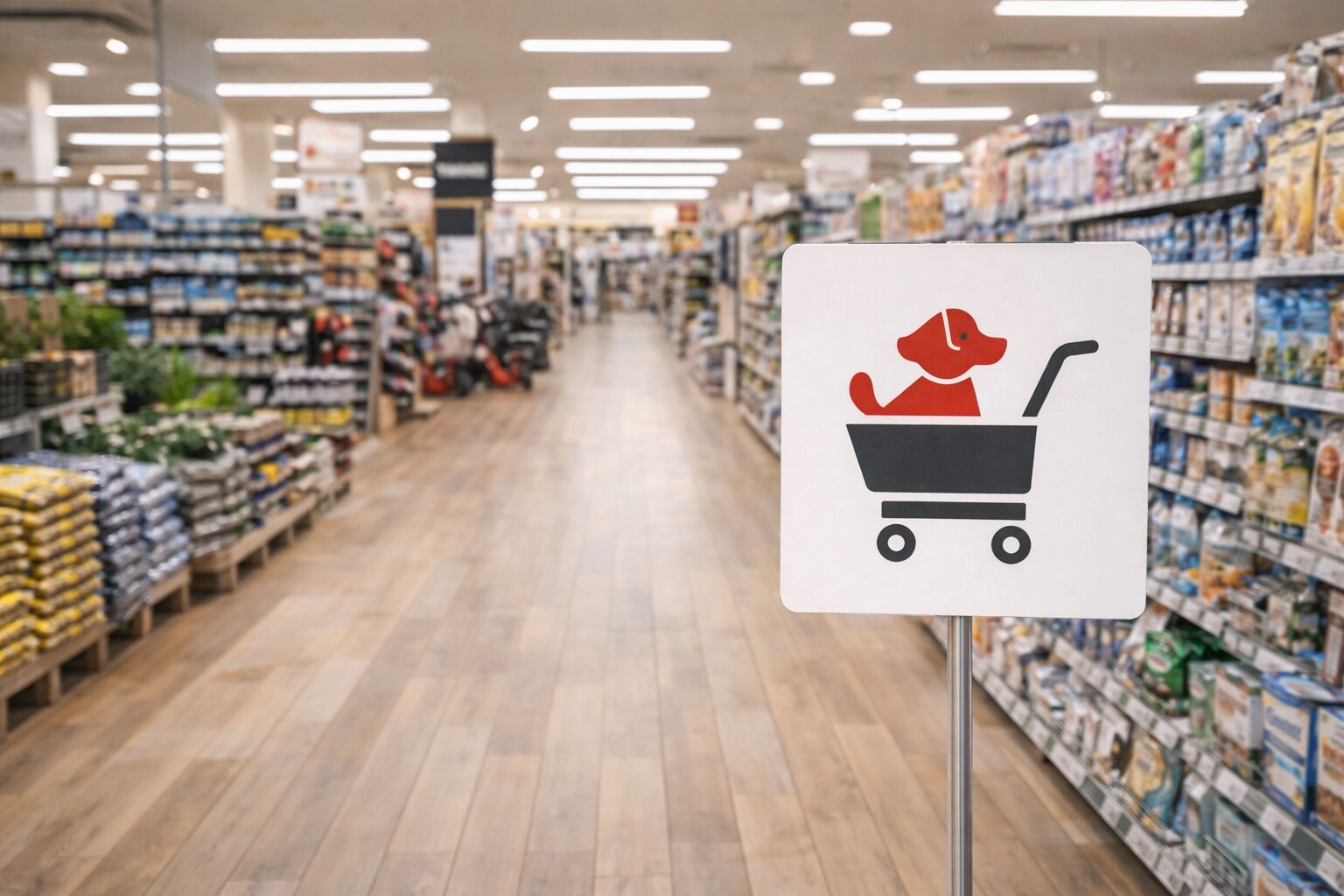 ホームセンターのペット同伴で、いちばん引っかかりやすいのが「同じ建物内の食品売り場」や「フードコート」です。ホームセンター本体がOKでも、食品エリアや飲食スペースは衛生面の都合で不可、というパターンが多いです。ここ、気になりますよね。「カートに乗せてるし大丈夫では?」と思いがちなんですが、食品を扱う場所は衛生管理が厳しく、動物の持ち込みが制限されやすいです。