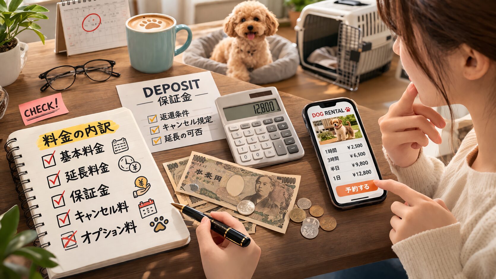 犬レンタルの料金は、見た目より複雑になりやすいです。時間制、半日、1日、宿泊、延長料金などに分かれやすく、さらに保証金が設定されていることがあります。ここで大事なのは、表示されている基本料金だけで判断しないことです。ぱっと見で安く見えても、延長料金、予約手数料、当日対応の追加費用、犬の体調変化に伴う条件変更などが重なると、想定より支払額が増えることがあります。