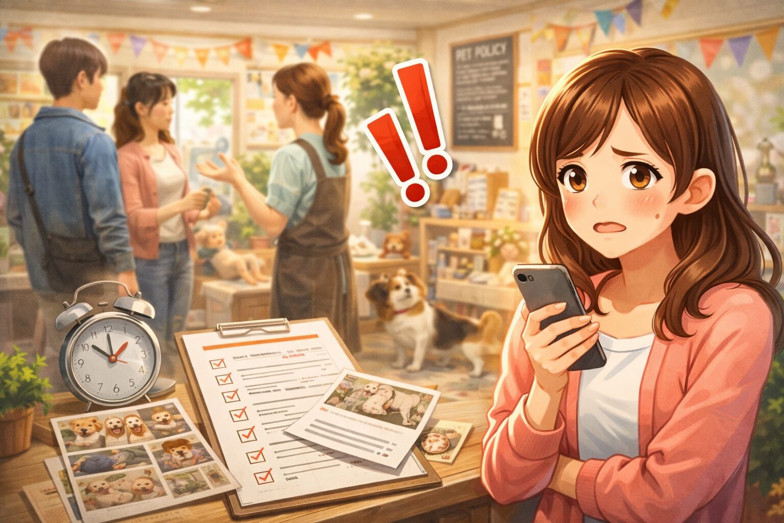 たとえば、散歩できると思っていたのに店内対応だけだった、写真を自由に撮れると思ったのに制限が多かった、抱っこやおやつに細かなルールがあった、返却時間に厳しくて焦った、というケースでは満足度が下がりやすいです。逆に、最初からルールが明確で、犬の性格や体調に合わせてできること・できないことが説明されていれば、多少制約があっても「納得して利用できた」という評価になりやすいです。