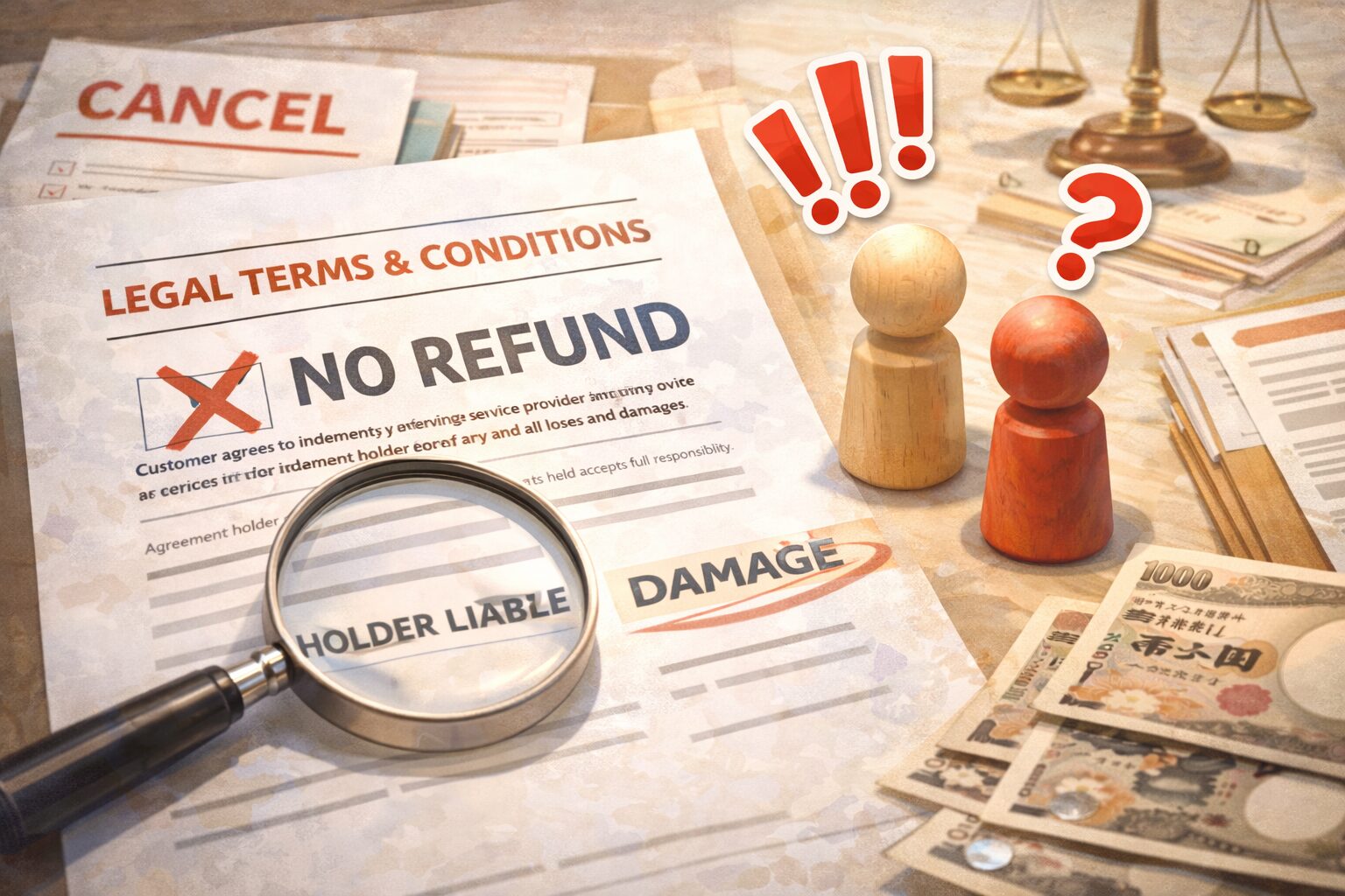 特に気をつけたいのは、言葉が強すぎる規約です。「一切責任を負いません」とだけ書かれていると、利用者はそれで全部終わりだと思ってしまいがちですが、実際には事情によって争点になることがあります。だから、規約に怖い文言があるから即アウトと決めるのではなく、説明体制や運営実態もあわせて見たほうが判断しやすいです。