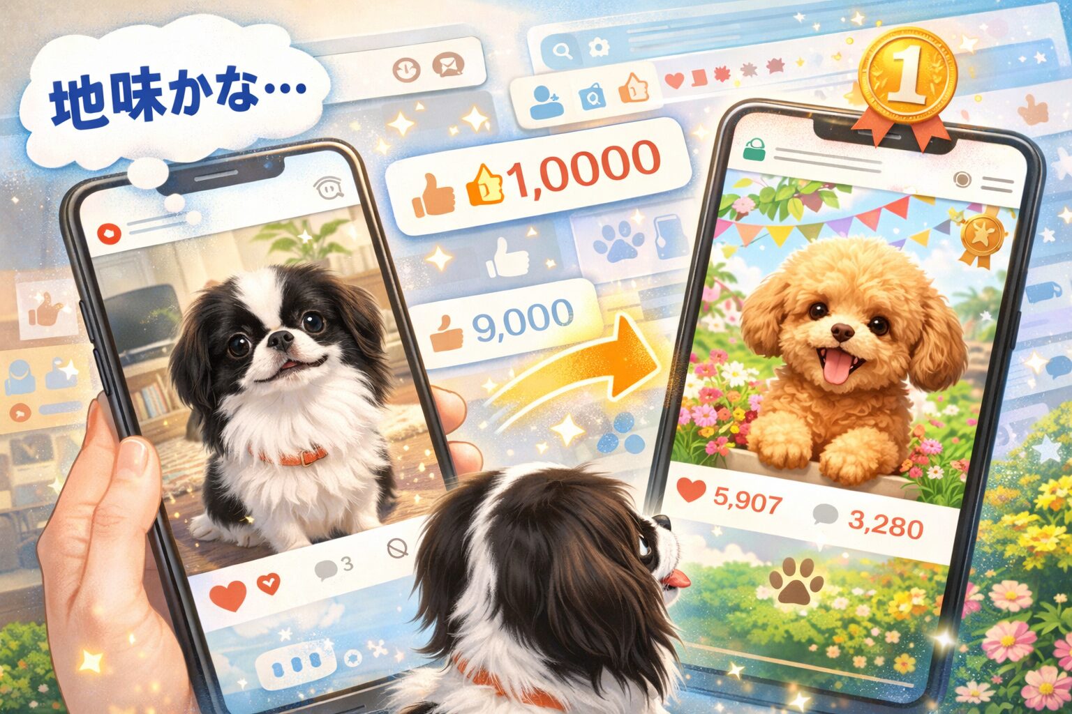 SNSは、短い時間で魅力が伝わる犬種が強いです。カットで雰囲気が変わる、動きが派手、表情が分かりやすい、そういう犬種は伸びやすい。狆はどちらかというと、じんわり良さが出るタイプです。実際に一緒に暮らすと「落ち着く」「距離感がちょうどいい」みたいな魅力が増してくるんですが、動画の一瞬で伝えきるのが難しいことがあります。