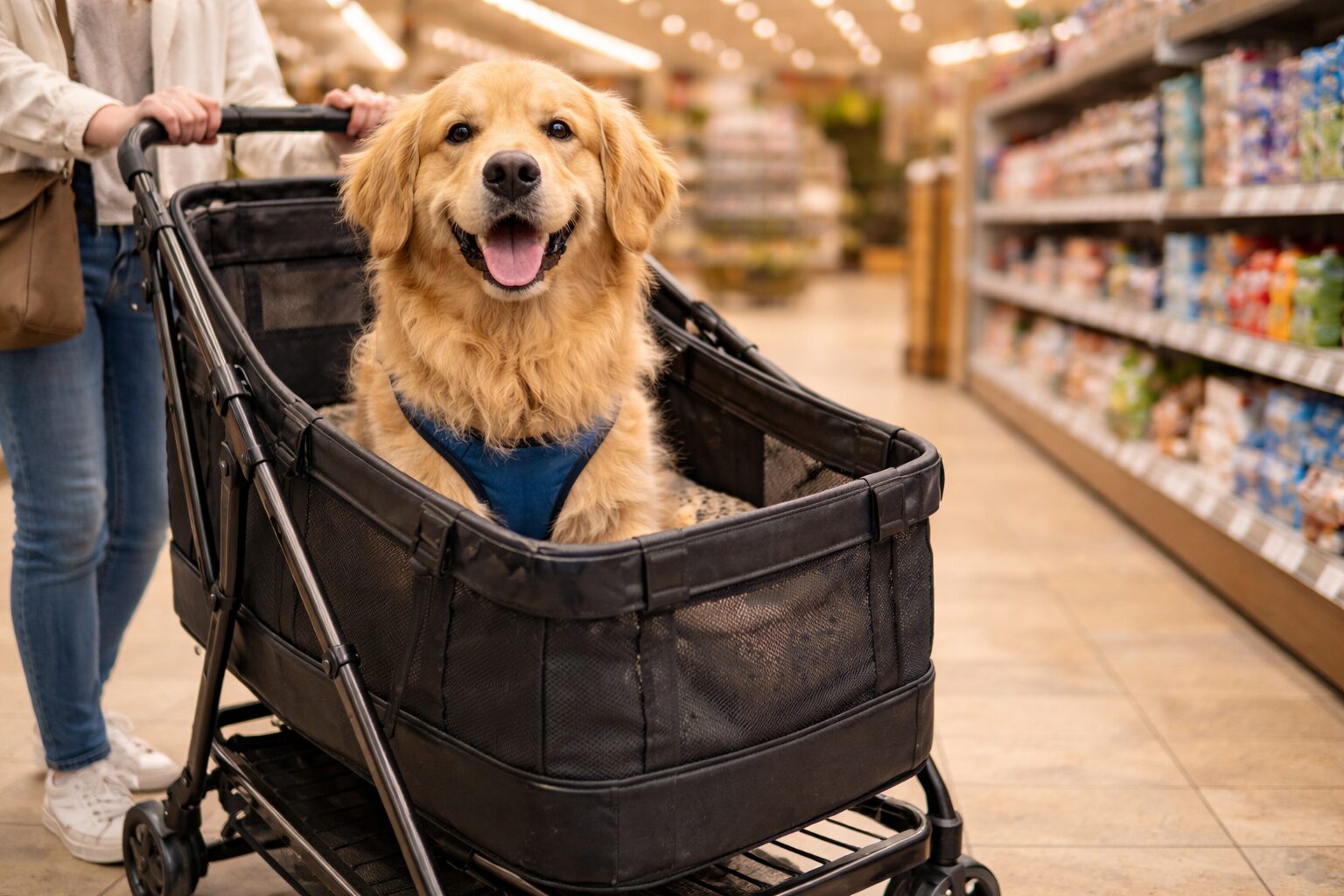 ペット同伴で一番トラブルになりやすいのが「突然の飛び出し」です。カートに乗せていても、リードを付けずに油断すると、興奮した瞬間にひょいっと出てしまう子もいます。これ、飼い主さんの気持ちとしては「うちの子は大丈夫」って思いがちなんですが、店内って刺激が多いんですよ。音、におい、人の動き、カートのゴロゴロ音。いつもよりテンションが上がるのは自然です。