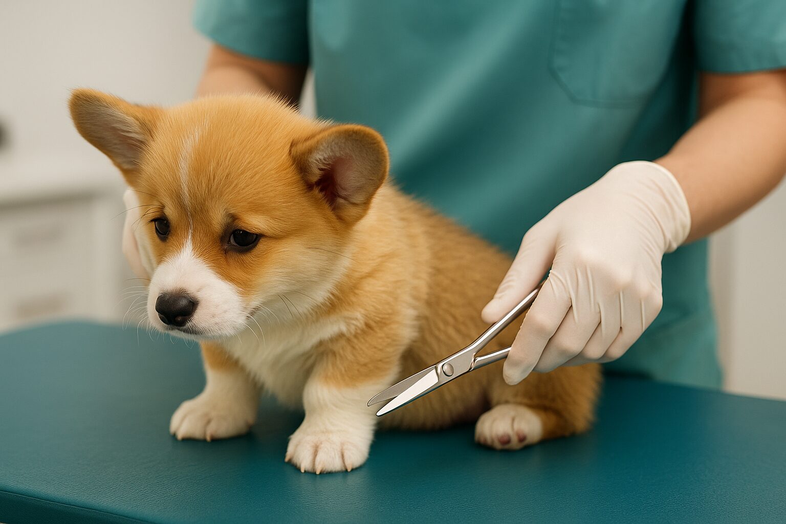 一般的にコーギーの断尾が行われるのは、生後まもない子犬の時期です。多くのケースでは、生後2〜5日ほどのごく早いタイミングで、獣医師が尻尾を短くする処置を行います。これは、神経系がまだ未発達なうちに行うことで痛みが少ないと考えられてきたためで、ブリーダー業界の中では「生まれてすぐに済ませるのが当たり前」という感覚が長く続いてきました。