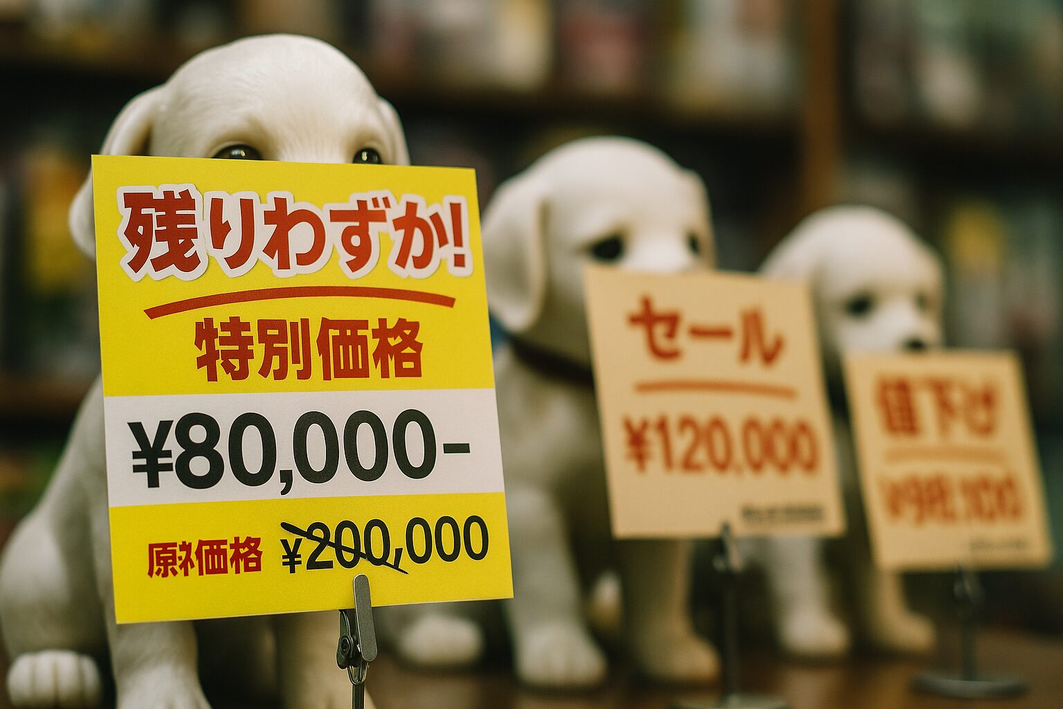 また、人気犬種・流行犬種は高額、そうでない犬種や月齢が進んだ個体は値下げされるなど、在庫の回転を考えた価格設定も行われます。需要が高いタイミングでは価格をやや高めに設定し、成長とともに購入希望者が減ってきた個体はセール対象として値下げすることで、トータルの在庫回転率を上げる狙いがあると考えられます。いわゆるセールや値引きによってお買い得感を出し、売れ残りを減らすのが、チェーン店ならではの戦略です。
