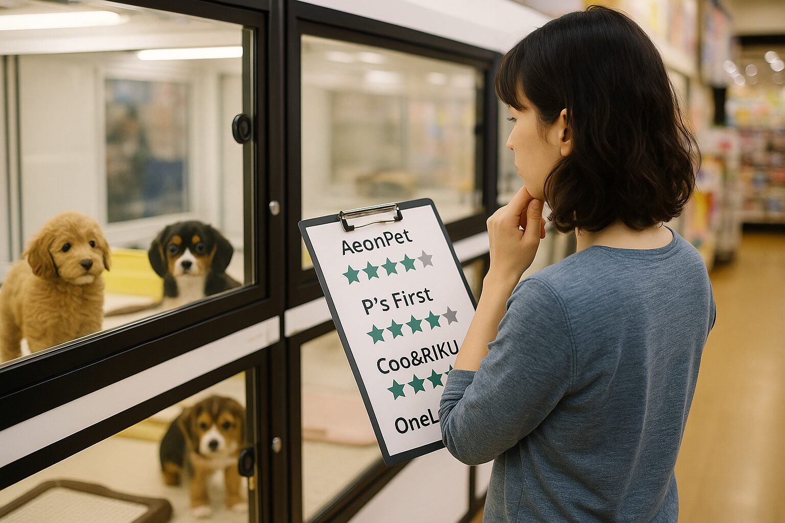 ここからは、ペットショップコジマだけでなく、イオンペットやペッツファースト、クーアンドリク、ワンラブといった他の大手チェーンと比較しながら、ペットのコジマはひどいなか?売れ残りという不安をどのように捉え直せばいいのかをお話しします。「どこが一番マシか」を探すというより、「自分の価値観に近いショップはどこか」を見つけるイメージで読んでもらえると嬉しいです。